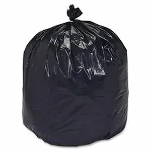 Linear low-density trash bags are made of 100 percent recycled resins with at least 30 percent post-consumer recycled material. Tubular construction is puncture-resistant and tear-resistant. Extra heavy-duty bags with 1.5 mil thickness withstand heavy workloads while minimizing input of resins into waste systems. Each bag can hold loads up to 75 lb.