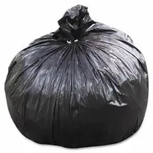 Linear low-density trash bags are made of 100 percent recycled resins with at least 30 percent post-consumer recycled material. Tubular construction is puncture-resistant and tear-resistant. Extra heavy-duty bags with 1.5 mil thickness withstand heavy workloads while minimizing input of resins into waste systems. Each bag can hold loads up to 75 lb.