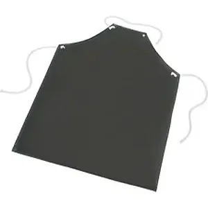 Laboratory apron features an impermeable surface for use in laboratories to protect you against chemical splashes. It is stitched completely on all sides with four aluminum grommets. Secure around you with three pre-tied, 30" nylon tie strings. Apron is made of a rubber-coated material.