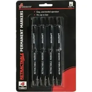 Retractable permanent markers allow easy single-handed operation. No more capping and recapping while using your marker. Low-odor, nontoxic premium ink dries quickly and will not smear or leak. Use to mark on wood, glass, plastic, metal, porous surfaces and more. Tip is made of durable polyester that holds its shape. Chisel tip allows broad, medium and fine point marking. Markers have a handy pocket clip for portability. Safety clip protects against pocket leakage.