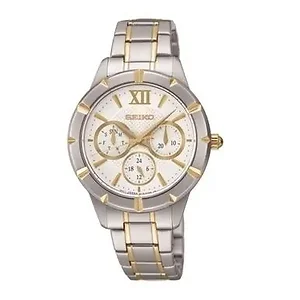Seiko SKY690 Lord Two Tone Stainless Steel White Dial Multi-Function Watch Seiko SKY690 Lord Series Watch Includes Box, Case, Paperwork and 30 Day Returns. Get treated like royalty when you wear the Seiko SKY690 Lord Two Tone Stainless Steel White Dial Multi-Function Watch. The colors, sizes and features of these watches are the reason why Seiko called it the Lord collection. There is a marked air of dignity associated with these watches. Wearing a magnificent watch is easy when you have a Lord. This Seiko SKY690 watch is as bold and adventurous as you are and just as style conscious. It's date display makes it the ultimate watch to possess. Features: Brand: Seiko Series: Lord Model number: SKY690P1 Case Shape: Round Dial window material type: Scratch Resistant Hardlex Display Type: Analog Clasp: Deployment Case material: Stainless steel Case diameter: 35 millimeters Case Thickness: 8 millimeters Band Material: Stainless Steel Band length: Women's Standard Band Width: 18 millimeters Band Color: Two tone Dial color: White Bezel material: Stainless steel Bezel function: Stationary Special Features: 3 Silver Tone Sub Dials with Day, Date, and 24 Hours Calendar: Date, Day Movement: Quartz Water resistant depth: 50 meters UPC: 4954628172624 Seiko SKY690P1 MSRP: $395