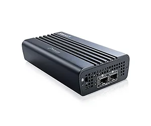 The Promise SANLink3 F2 is a high-performance dual Thunderbolt 3 to dual 16Gbps Fibre Channel adapter designed for connecting to high-speed storage solutions. This adapter enhances workflow efficiency for users in media production and data-intensive industries, providing seamless connectivity and outstanding data transfer speeds.