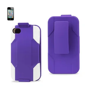 The Reiko Hybrid Heavy-Duty Holster Combo Case is designed to provide maximum protection for your iPhone 4/4G. With its striking white and purple color scheme, this case combines style and functionality. It features a built-in holster belt clip that can be easily locked in place, allowing for various viewing angles. Constructed from impact-resistant materials, this case ensures your device is safe from drops and shocks.