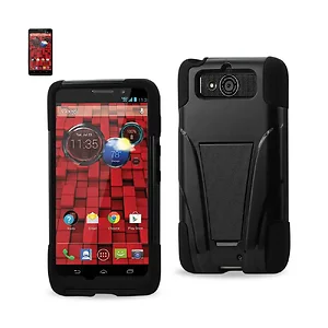 Protect your Motorola DROID Mini with this heavy-duty hybrid case designed for optimal durability and functionality. The built-in kickstand allows for convenient media viewing, while the rugged construction ensures your phone withstands everyday challenges.