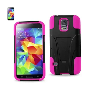 Protect your Samsung Galaxy S5 with the Reiko Heavy Duty Case. Designed with a stylish hot pink and black color scheme, this case combines flair with functionality. Its robust construction ensures that your device remains safe from drops and impacts, while the built-in kickstand allows for hands-free viewing. Ideal for those who lead an active lifestyle, this case offers exceptional protection without compromising on style.