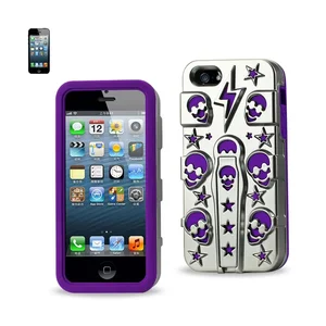 Apple SLCPC23-IPHONE5SPP Purple Hybrid Skulls Case with Kickstand for iPhone SE/5/5S