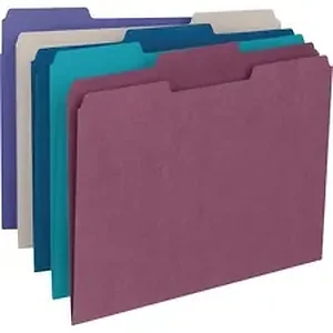 Speed filing and retrieval time by using color to categorize different types of folders. Single-ply is the economical choice for files that are seldom accessed. File folders are made of 11 point stock. They also feature undercut front panel and rounded top corners. 1/3-cut tabs are 1/2" high. Folders are scored for 3/4" expansion.