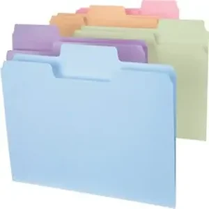 Find critical files fast with SuperTab file folders. Get nearly double the labeling area of standard file folders so you can write larger or use more lines of description. These sturdy, durable file folders fit any vertical or lateral filing system. The SuperTab offers a 90 percent larger label area than tabs on standard folders for improved labeling. Your labels will be easy to see because you can use larger text or more lines of text. Extra-wide, 1/3-cut tabs are 7/8" high. Letter-size folders are made of 11 point stock and scored for 3/4" expansion. Assorted pastel colors include Lake Blue, Camel, Moss, Lavender and Pink.