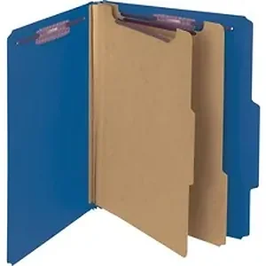 Protect your letter-size documents and fingers with Smead's patent-pending, SafeShield Coated Fastener Technology - the solution to fastener issues, including paper tears, finger cuts and excessive fastener crinkling. The cover features two 2" SafeShield bonded-style coated fasteners in positions 1 and 3. 2/5-cut tab is right of center. Sturdy, tear-resistant gusset expands 2". The cover is made of 20 point, Press Guard, heavyweight Pressboard stock with a special coating to resist moisture and stains. This extra-durable classification folder also features two dividers with 1/3-cut tabs to create six separate filing surfaces within one folder. Each 17 point kraft divider has one 1" SafeShield-coated, twin-prong fastener.