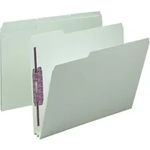Protect your letter-size documents and fingers with Smead's patent-pending, SafeShield Coated Fastener Technology - the ultimate solution to fastener issues, including paper tears, finger cuts and excessive fastener crinkling. Made for large, bulky files that get plenty of use, these pressboard fastener folders are excellent for project files, real estate transactions, loans, legal files or anytime you need to keep large amounts of paperwork in sequential order for frequent reference. 1/2" high tabs are 1/3 cut in assorted positions. Folders expand 2" and offer 2" prong, K-style fasteners in positions 1 and 3 (two per folder). Folders are made of 25 point, gray/green pressboard stock with a high percentage of recycled material.