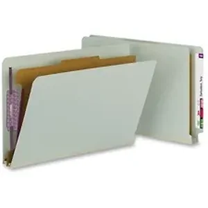 Protect your documents and fingers with Smead's patented, SafeShield Coated Fastener Technology on these classification folders - the ultimate solution to fastener issues, including paper tears, finger cuts and excessive fastener crinkling. End-tab classification folders let you create a file within a file using a tabbed divider with tab and two 2" SafeShield bonded-style coated fasteners in positions No. 1 and 3 on the front and back panels. Folder expands up to 2". The divider features one 1" SafeShield-coated, twin-prong fastener. Divider also offers a 3/8" high, 1/3-cut top tab and is made of 17 point kraft stock. Classification folder's tab is straight-cut.