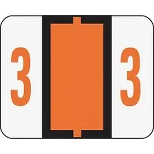 Self-adhesive, color-coded label rolls feature a wraparound solid color bar and colored character printed on a white background. Colors are compatible with end tabs systems using the bar-style format. Labels are scored to provide a wraparound color bar. Each roll includes 500 labels and comes in a dispensing box. Labels are 1-1/4" wide x 1" high before folding.