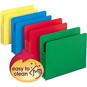 Poly File Pockets offer strong, heavyweight polypropylene construction and a 3-1/2" expansion to hold lots of paperwork. Use bright hues for color-coding. Drop-front panels provide easy access to letter-size contents. Design also features 6" high, matching color gussets and top corners that are rounded, front and back. Acid-free poly material is tear-resistant, water-resistant and easy to clean.