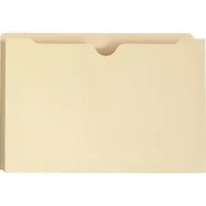Manila file jackets feature full-height gussets to keep materials from slipping out. The 1/2" high, two-ply reinforced, straight-cut tab with thumb-cut design allows easy access. Legal-size file jackets expand 1-1/2" and are made of 11 point stock.