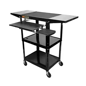 Amplivox SN3370 Adjustable Height Metal Cart with Wheels - Black Finish