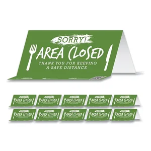 SORRY! AREA CLOSED tent cards. Measuring 8 x 3.87 inches, these cards are perfect for table tops and display areas, ensuring that everyone maintains a safe distance.
