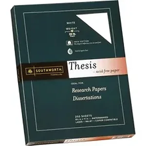 Thesis paper is made of 100 percent cotton for crispness and texture. Bright white, acid-free paper is watermarked and date-coded for authentication. Use 20 lb. paper in copiers, laser printers and inkjet printers.