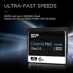 SILICON POWER 256GB CFAST 2.0 CINEMAPRO CFX310 MEMORY CARD,3500X,UP TO 530MB/S R