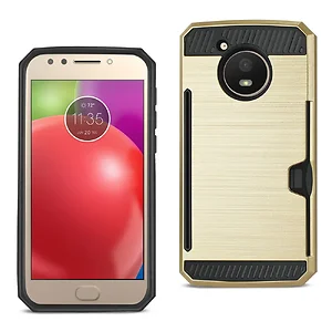 Protect your Motorola Moto E4 in style with the Gold Slim Armor Hybrid Case. This case offers dual-layer protection along with a convenient card holder, ensuring your essential items are always within reach. The slim design means it fits easily in pockets or bags, providing both protection and practicality.