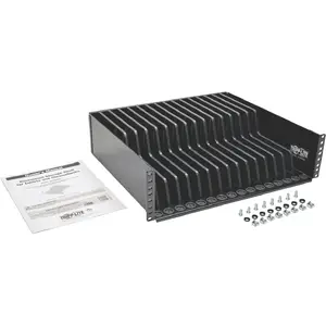 General InformationThe SR16SHELF 3U Rack-Mount Configurable Storage Shelf securely stores up to 16 personal electronic devices in your wall-mount or floor rack enclosure. Ideal for storing tablets, laptops, Chromebooks and other similar devices, the SR16SHELF comes preset with 4/5-inch spacing between its plastic dividers. However, the 15 dividers can easily be removed and adjusted to fit your devices. Compatible with all EIA-compliant 19-inch wall-mount and floor rack enclosures, the SR16SHELF is covered in non-scuff paint designed to resist scratches. The devices' charging cables pass through ports with rubber grommets that hold the cable in place and prevent clutter and tangles. All mounting hardware included. Mounts into 3U of rack space, but may require additional rack space depending on the size of the devices being stored.Physical CharacteristicsForm Factor: Rack-mountableColor: BlackHeight: 4.9"Width: 18.9"Depth: 15.8"Rack Height: 3URack Width: 19"Weight (Approximate): 12 lbMiscellaneousPackage Contents: 3U Rack-Mount Configurable Storage Shelf for Personal Electronics 15 x Plastic Dividers 8 x M6 Screws 8 x M6 Cage Nuts 8 x M6 Cup Washers Owner's manual Environmentally Friendly: YesEnvironmental Certification: RoHSWarrantyLimited Warranty: 2 Year