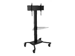 The SmartMount Universal Flat Panel TV Cart is a robust and flexible solution for displaying flat panel TVs ranging from 32" to 60". Designed for versatility, this cart is perfect for settings such as boardrooms, trade shows, or conference rooms. It features a sleek black finish and a tinted glass shelf that adds a modern touch while providing functionality.