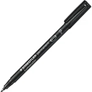 Quick-drying permanent markers with fine point contain ink that won't bead or smudge. Dry-Safe ink allows the marker to be left uncapped for days without drying up. Automatic pressure equalization prevents the pen from leaking on board aircraft. Compact permanent marker also includes a cap with a clip for attaching to notebooks, pockets and more. Write on overhead transparency film or such glossy surfaces as CDs/DVDs, photos, transparency sleeves, slide frames, cromalins, glass, acrylic and vinyl. Color-intensive, low-odor, xylene-free ink dries in seconds so the markers are ideal for left-handers. Correction pen (sold separately) accurately clears film of all Lumocolor markings. Deleted areas can then be immediately remarked.