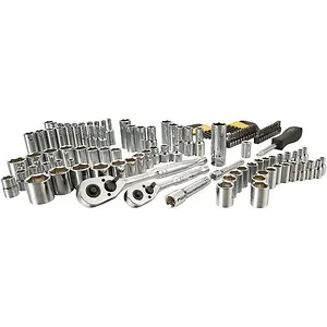 The Stanley 123-Piece Socket Set is crafted from high-alloy steel and designed for durability and performance. This comprehensive set includes tools that meet or exceed ANSI standards, ensuring reliability in various tasks. The Max-Drive design provides increased torque, making it easier to tackle tough jobs.