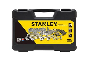 The STANLEY STMT71653 145PC 14/38DR MECH TOOL SET - The STANLEY 145 Piece Master Mechanics Tool Set includes a complete selection of high-quality ratchet handles, sockets, extensions, hex keys, and more. This set gives you easy access to a range of popular hand tools in variety of sizes. Features & Benefits: Full polish chrome finish for anti corrosion protection, Quick release allows user to remove extensions or sockets with one hand, Tough and durable carry case for easy storage and mobility, Meets or exceeds ANSI specifications.