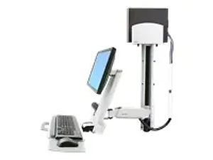 The Ergotron StyleView HD Combo System in White is designed for flexibility and ergonomic workspace organization. This versatile mounting system lets you position your display, keyboard, mouse, and barcode scanner easily in a single motion, allowing you to work comfortably both sitting and standing.