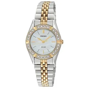 Seiko SUP094 SK Ladies Solar 25.5mm Two-Tone Watch with Gender Neutral Style