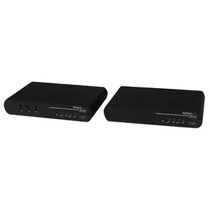 The StarTech.com USB DVI KVM Console Extender with Audio allows you to extend DVI-D (or HDMI) video, USB, and audio signals over standard Cat5 cabling or through a LAN connection, up to 330 feet (100 meters). This versatile solution provides seamless control of your USB and DVI-D devices remotely, while maintaining high-definition video resolutions and crystal-clear audio.