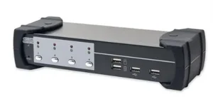 The 4-Port USB/DVI KVM Switch with USB 2.0 Hub allows you to control multiple computers using a single keyboard, mouse, and monitor setup. This device is perfect for streamlining workspace efficiency, whether in an office, home, or data center environment.