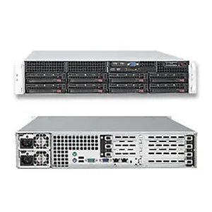The Supermicro 2U Rackmount Server SYS-6026T-6RF offers powerful performance with support for Intel® Xeon® processors from the 5500 and 5600 series. Designed for high-density data centers, this barebone server features 8 hot-swap drive bays for customizable storage configurations and a redundant power supply to ensure reliable operation.