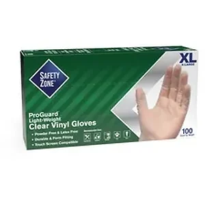 The Safety Zone SZN GVP9XLHH Safety Zone Powder Free Clear Vinyl Gloves - X-Large Size - Clear - Powder-free, Latex-free