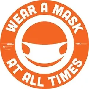 BeSafe Messaging Floor Decal with the message, "Wear A Mask At All Times," is great for use on most floor surfaces in public. Message is printed in large, white letters on an orange border as well as a white mask on a round head to depict action needed. Floor Decal alerts all those in the vicinity to avoid close contact and maintain your distance when around others. Engineered to provide clean, smooth removability from most surfaces, high-performance, anti-slip vinyl is repositionable and features pressure-sensitive adhesive for easy application. Use on glass, metal, painted surfaces, smooth concrete and some plastics with minimal peel-build over time, but performance can vary depending on conditioning so testing on your surface is recommended. The 10 mil floor decal is not recommended on carpet.