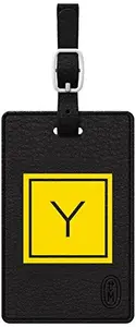 Centon TAGV1BLK-M06E-Y Elegant Monogrammed Black Leather Bag Tag - Electric Style