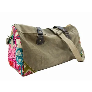 Vintage Addiction TB00304-A Vintage Upcycled Military Tent Travel Bag - Eco-Friendly