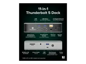 The 11-in-1 Thunderbolt 5 Docking Station offers a versatile solution for connecting all your devices effortlessly. With high-speed data transfer and multiple ports, this dock allows you to expand your workstation and boost productivity.