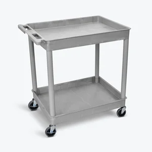 This heavy-duty utility cart is designed for versatility with two spacious tub shelves, perfect for transporting various items efficiently. The tub shelves feature 2.75" deep walls that keep contents secure during movement. Made from durable thermoplastic resin, the cart resists stains, scratches, dents, and rust, holding up to a remarkable 400 lbs. Maneuverability is enhanced with a push handle molded into the top shelf and four smooth-rolling, heavy-duty 4" casters, making it ideal for any workspace.