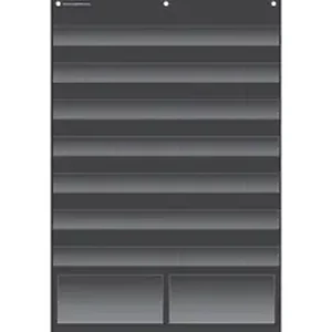 Calendar pocket chart features a bold, solid color to help young learners stay focused on your displayed items. 45 transparent pockets with open tops allow you to quickly insert and remove materials as needed. Its lightweight construction hangs from sturdy, metal grommets for simple attachment and removal. The durable design holds up through daily use to keep your items displayed all year long.
