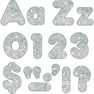 Lively letters mean limitless possibilities. They are convenient, reusable and easy to use. Sparkly Ready Letters are great for student work displays, bulletin boards, signs, banners, news boards, learning activities, labeling and much more. Fade-resistant color coordinates with Trend products. Durable set includes 50 uppercase letters, 82 lowercase letters, 20 numerals from 0 to 9, 30 punctuation marks, and one blank sheet.