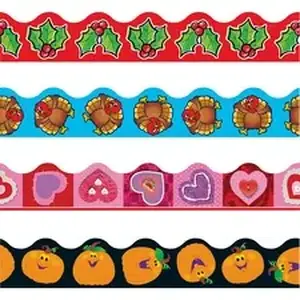 Decorate classrooms and enhance learning environments with durable themed trimmers. Trimmer variety pack highlights the holidays with Pumpkin Pals, Turkey Time, Holiday Holly, and Scrapbook Hearts. Perfect for trimming bulletin boards, chalkboards and classroom walls. Ideal for prekindergarten to ninth-grade (ages 3 to 15).