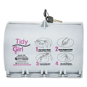 This Feminine Hygiene Disposal Bag Dispenser is made from durable gray plastic, designed to provide a convenient and hygienic solution for disposing of feminine hygiene products. Ideal for use in restrooms, it promotes cleanliness and helps maintain a sanitary environment.