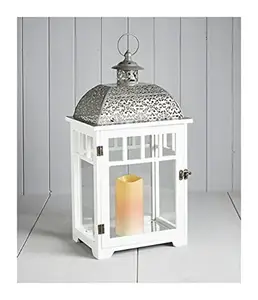 Add instant mood lighting to your home and garden with this realistic lantern with a flickering candle. It has an FSC certified wood base with a metal filagree roof.The built in on/off timer will allow many hours of enjoyment from one set of batteries. * Includes 2 AA batteries * On/off timer has 6 hours on 18 hours off * Suitible for indoor and outdoor use * 600 hours of use on the timer or one hundred days. *10.75" tall.