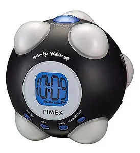 The Timex Wacky Phrases Shake N Wake alarm clock is designed to bring a fun twist to your morning routine. With its unique feature of waking you up with 7 amusing character phrases and sound effects, waking up has never been so entertaining.