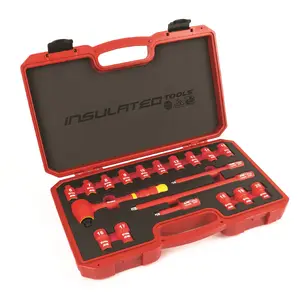 Designed for safety and performance, the Titan 19-Piece 3/8" Drive Metric VDE Insulated Socket Set provides insulation for working on live circuits. Each socket is crafted from high-quality materials for durability and precision, making it an essential addition to any electrician's toolkit. Featuring a comprehensive range of sizes, this set ensures you have the right tool for the job while maintaining safety.