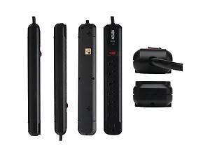 Your devices plug into six NEMA 5-15R outlets placed at a right angle to simplify cord management. Another outlet is placed at the end to accept a bulky transformer without blocking adjacent outlets. An integrated 15A circuit breaker protects all outlets and shuts down connected equipment in case of overload. The lighted on/off switch provides one-touch control over connected equipment. A diagnostic LED confirms your connected equipment is protected.