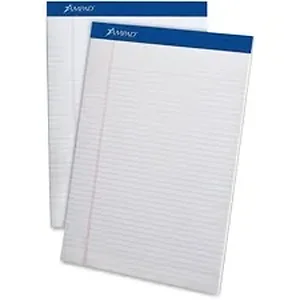 Pad features 50 letter-size sheets of white writing paper and a sturdy, 40 point, chipboard back. Dark blue header strip is attached with strong staples. Perforated pages in pad allow neat, no-tear sheet removal. Each legal/narrow-ruled sheet has 1/4" line spacings and a 1-1/4" left margin.