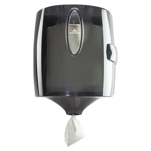 This Center-Pull Paper Towel Dispenser is designed to provide easy and sanitary access to towels. With its sleek translucent smoke finish, it's an attractive addition to any restroom or kitchen environment.