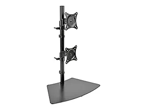 Compatible with Most Desks, Tables and Workstations:Functions as either a desktop stand or clamp-on mount - both mounting options included, Mounts 2 flat-panel displays from 15 to 27 in. on a vertical pole, Dual mounting plates adjust independently for angle and height, Ideal for home and office use, Clamps to flat surface up to 3 in. thick & Convenient One-Touch Adjustment 20 swivel and -20 to +20 tilt capability provide comfortable viewing from multiple angles Full 360 rotation in both portrait and landscape orientations Durable Metal Construction Each mounting plate supports displays up to 18 lb. Scratch-resistant powder-coated finish blends with any dcor Mounting hardware included r Cable clamps organize cables and reduce clutter VESA Compliance Conforms to VESA-compliant universal mounting hole patterns
